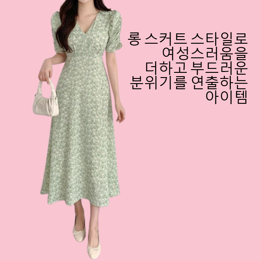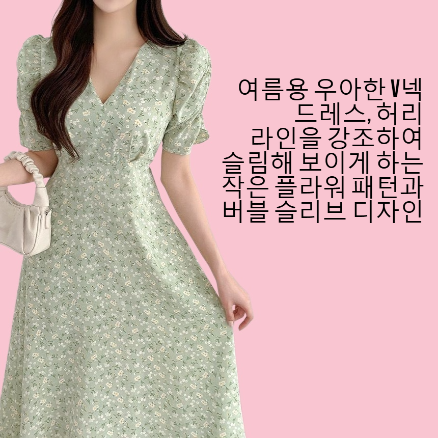브이넥 디자인과 허리끈으로 슬림한 실루엣 연출, 플라워 패턴으로 화사한 분위기, 데일리룩 및 나들이에 적합한 원피스